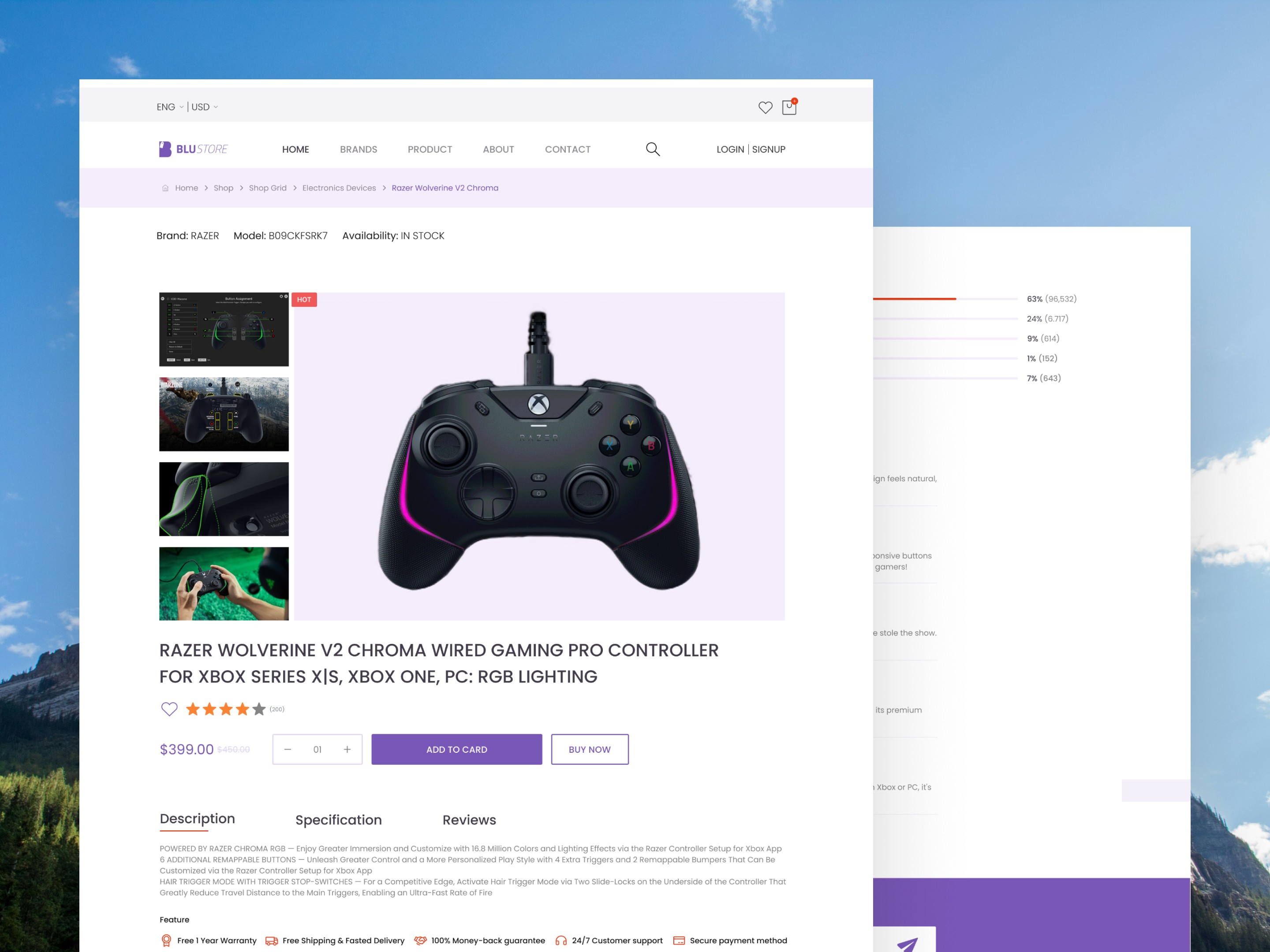 Product Page Experience: A rich product detail page with image carousels for variations and structured descriptions to help users fully understand each product before purchase.