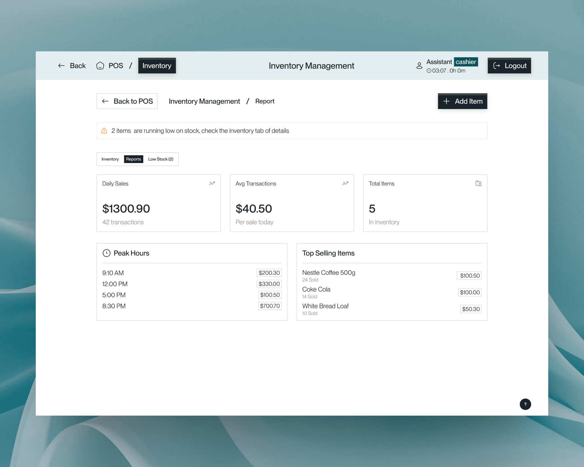 Main POS View uses legible tables for quick actions.